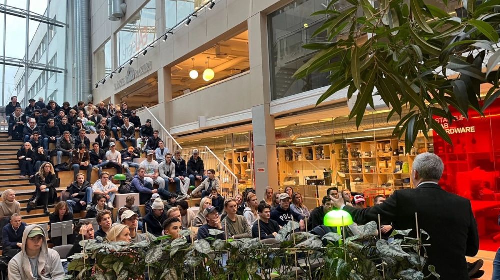 Idar Kreutzer, områdedirektør i NHO, vurderte og kommenterte alle presentasjonene. Han er er også imponert over arbeidet elevene har gjort: